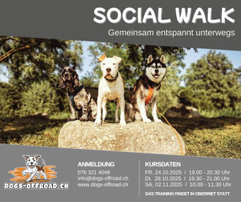 Die Social Walks sind gedacht für Hunde, die bei der Begegnung mit anderen Hunden an der Leine ängstlich, angespannt, aggressiv, nervös oder einfach aufgedreht reagieren. Natürlich auch für Menschen die bei Begegnungen unsicher sind oder einfach vorbeugen möchten. Bei den Social Walks wird auf die individual Distanz jeden Hundes geachtet, sodass alle entspannt und ruhig miteinander spazieren können.